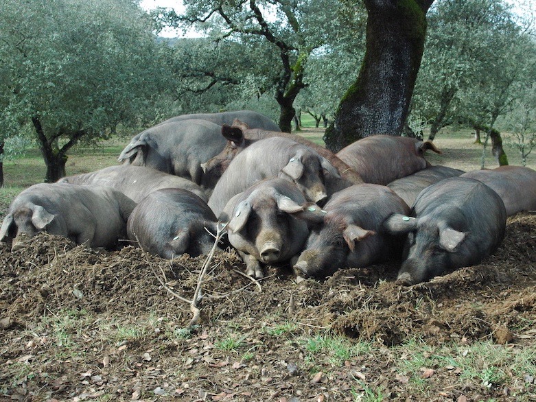 Het cerdo iberico is een zwart, half wild varkensras. Het heeft zich uitstekend aangepast aan het klimaat in het zuiden en zuidwesten van Spanje. Noch extreme hitte, noch barre kou kunnen het dier van de wijs brengen. Iberico-varkens zijn zeer mobiel en zorgen voor een gelijkmatige, ecologische bemesting van uitgestrekte weidevlaktes. De dieren wroeten in de grond op zoek naar wortels, eten gras en kruiden waardoor het struikgewas laag wordt gehouden.