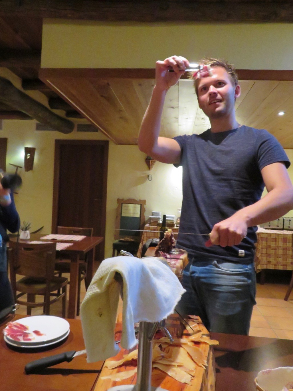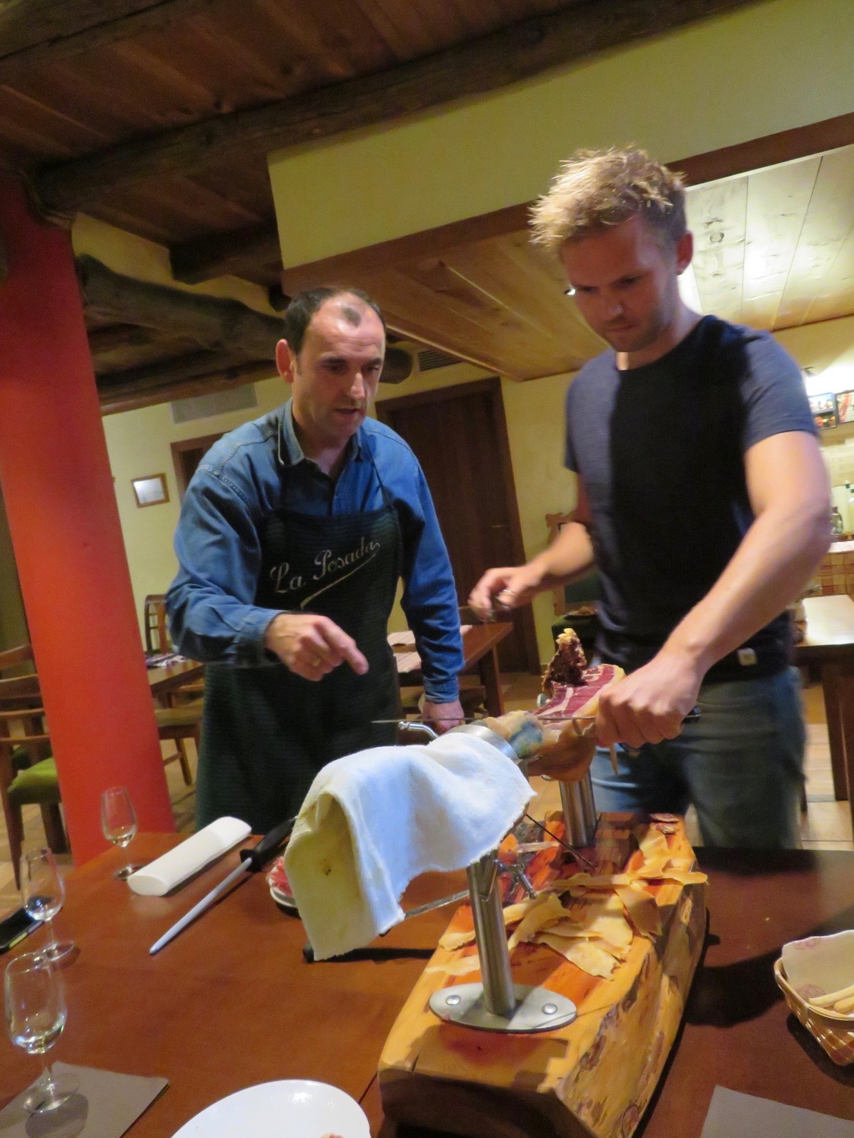 Tijdens de trektocht Aracena verzorgt de eigenaar van het eerste onderkomen in Alajàr, Angèl, een workshop 'Spaanse ham'. In 3/4 uur krijg je allerlei wetenswaardigehden te horen over de productie, de rijping en de smaak van de ham. Natuurlijk leer je ter afsluiting van de workshop de kunst van het 'perfect gesneden' plakje ham.