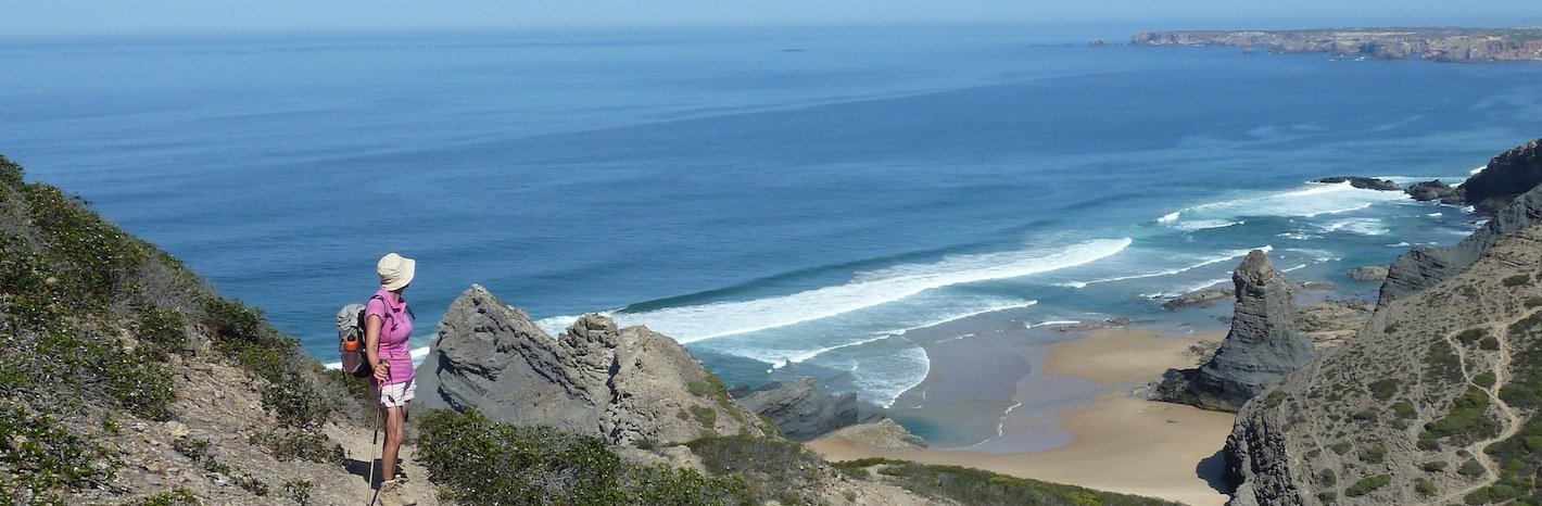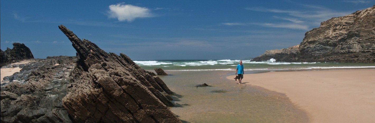 Portugal lijkt te zijn gemaakt voor wandeltrektochten. Was het vroeger nogaleens zoeken en improviseren bij gebrek aan markeringen, de laatste jaren zijn er verschillende lange afstandspaden uitgezet en gemarkeerd.Alentejo. de Costa Vicentina, een fantastisch kustpad van Odeceixe naar Sines. 7 Dagen lang brede zandstranden, bulderende branding, af en toe een zandsteenklif. Elke avond een heerlijk terras met uitzicht op een gouden zonsondergang. From Alentejo with love ...
