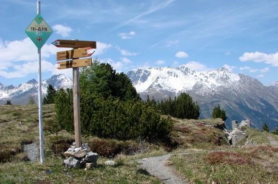 De eerste etappe in de 10-daagse variant van Oostenrijk naar Italië via Plamort en de bron van de Adige, de Etschenquelle. U passeert de anti-tanklinie op de grens van Oostenrijk - Italië aangelegd tussen beide wereldoorlogen. Prachtig uitzicht op de Reschensee en de hoogste top van de Ortlergruppe. De wandeling is in te korten met 2,5 km door het eerste traject met de kabelbaan omhoog te gaan naar het bergstation Bergkastel op 2170 meter. De kabelbaan is geopend v/a 21 mei.