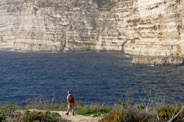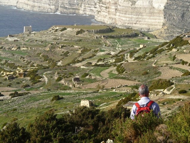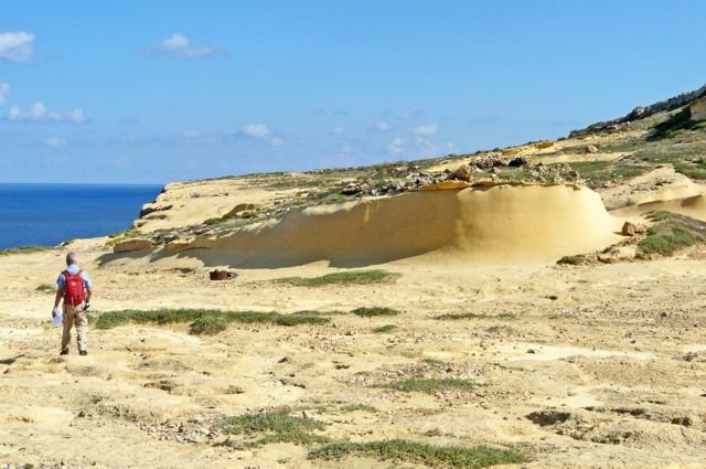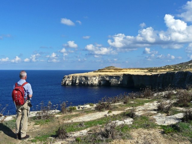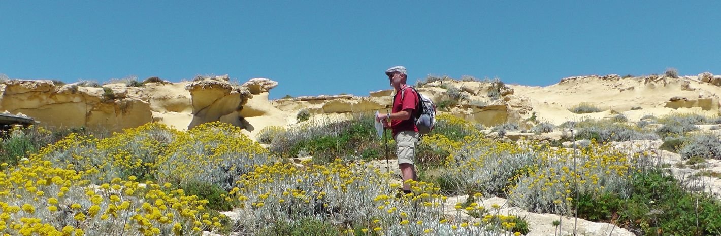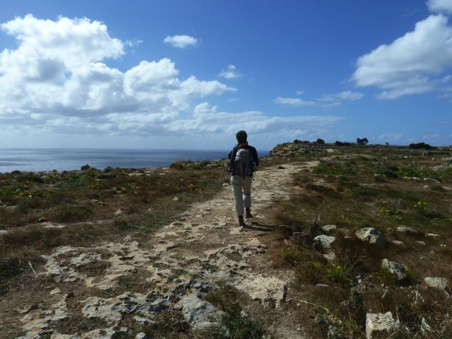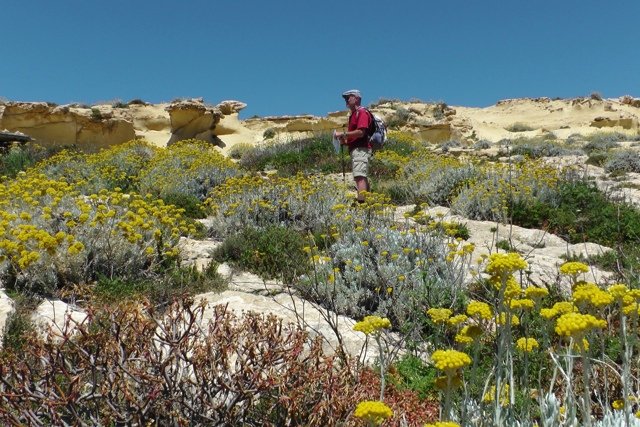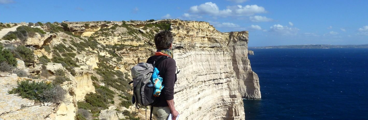Gozo is het kleine zusje van het niet veel grotere broertje Malta. Te klein voor het grote toerisme, maar groot genoeg om een 'coastal path' te hebben. In 4 dagen loop je dit heerlijke eiland helemaal rond. Prachtige routes vol uitzichten op de kleurrijke krijtwanden waar het eiland bekend om is, 40 tinten geel van zwavel tot oker. Met overal zicht op zee. Er loopt een pad rond het eiland, de ‘Gozo çoastal walk’, wij wijken daar soms vanaf om asfalt te vermijden.