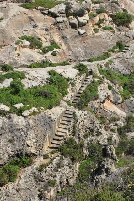 Korte transfer van Xlendi naar Mgarr. In veel opzichten is de laatste etappe langs de zuidkust de meest spectaculaire. Hoge krijtwanden, eenzame wachttorens, weggedoken baaitjes en een ruige natuur bepalen de sfeer. Van de haven Mgarr gaat het bovenlangs de hoge klifkust van Ta 'Seguna naar de intieme inham van Mgarr ix-Xini, fraai strandje vol tamarindes. Let tijdens de klim uit de baai goed op of u de blauwe rotslijster ziet, nationale vogel van de Maltese Republiek, die hier broedt. Het plateau Ta' Cenc is botanisch interessant, vol endemische flora. Heerlijk rustpunt is het plein voor de parochiekerk van Sannat. Vandaar gaat het over smalle rotspaden met in de rots uitgehouwen traptreden naar Xlendi, laatste aankomstplaats en startpunt van etappe 1. De cirkel is rond.