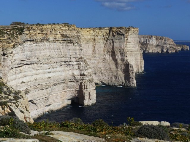 Korte transfer van Xlendi naar Marsalforn. De wandeling langs de noordoostkust van Gozo heeft als eerste doel de Rambla-baai met de grot van de beeldschone nymf Calypso, die – zo gaat het verhaal in de Odyssee van Homerus – een jaar lang de held Odysseus tegen zijn zin (???) in haar grot vasthield. Wat daarvan nog te zien is? Niets …. behalve een mooie mythe en een mooie baai. Hierna over een prachtig rotspad tussen hoog opgeschoten rietkragen en citrusbomen naar Dahlet Qorrot. Vanaf de Hondoq Bay volgt u een smal kustpad naar Mgarr, boven de diepblauwe zee en met uitzicht op het kleine Comino en Malta erachter, de Middellandse Zee op zijn mooist. Per bus terug naar Xlendi.
