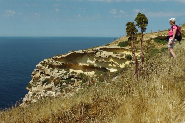 Korte transfer van Xlendi naar Mgarr. In veel opzichten is de laatste etappe langs de zuidkust de meest spectaculaire. Hoge krijtwanden, eenzame wachttorens, weggedoken baaitjes en een ruige natuur bepalen de sfeer. Van de haven Mgarr gaat het bovenlangs de hoge klifkust van Ta 'Seguna naar de intie...