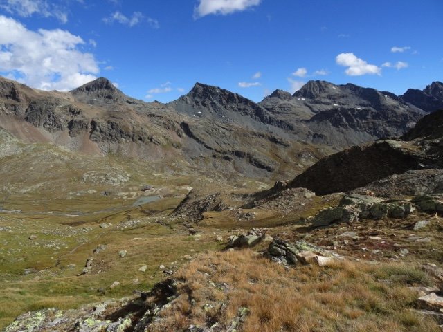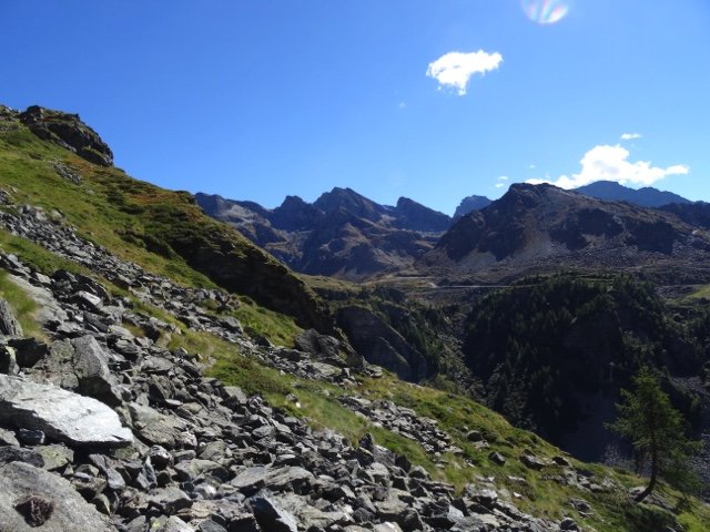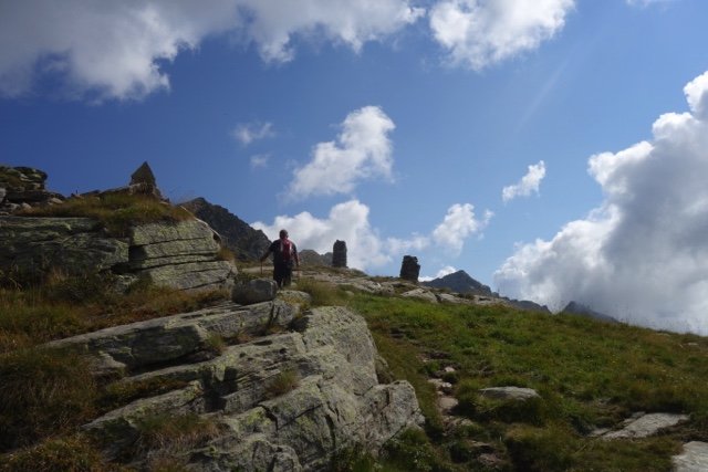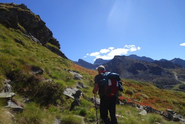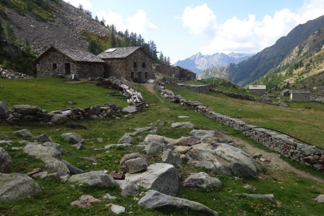 Je start vanuit La Gruba over het mooie met stenen aangelegde ezelpad. Het eerste deel van ca. 3 km is een stevige klim, deels langs een beek, naar het hoogste punt van de wandeling, de Colle de Lasounay (2400 meter). Aan de andere kant van de pas loop je over een grote vlakte van hoogveen en alpenw...