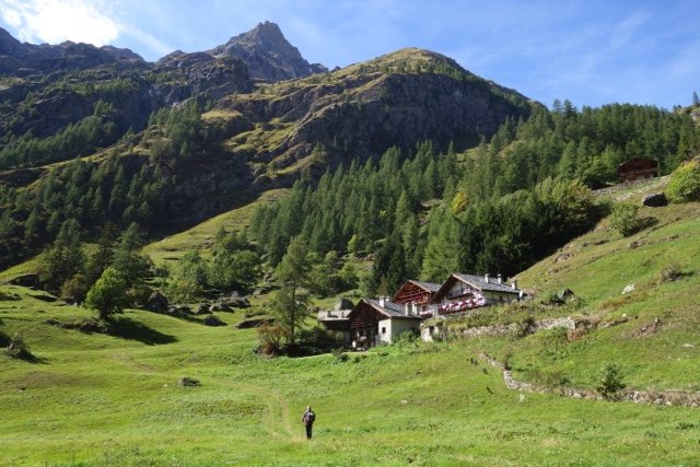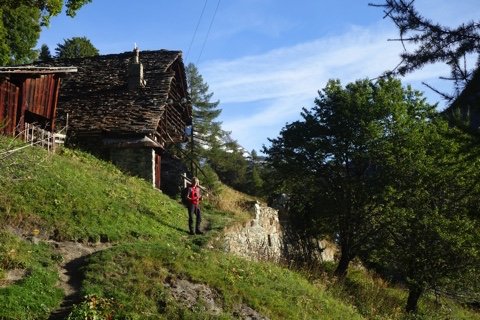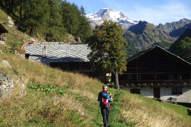 Een rustige en korte wandeling door alpenweiden met enkele typische Walser gehuchten en huizen, langs de beboste hellingen van het dal naar het historische Walser dorp Gressoney-La-Trinité, terwijl de Monte Rosa bijna voortdurend uittorent boven de omgeving. In het dorp Gressoney heb je gelegenheid het Walser museum te bezoeken. Vanuit Gressoney gaat de wandeling verder langs de Lys geleidelijk weer omhoog naar de buurtschap Anderbätt waar je verblijft in een zeer verzorgd en sfeervol onderkomen.