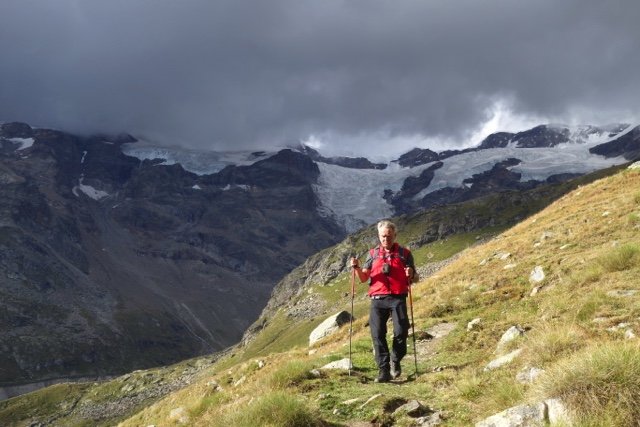 Deze wandeling gaat via Staffal omhoog en brengt je al snel de hooggebergte ervaring, hier op de bekroning van deze trektocht, het Monte Rosa massief. De gletsjer komt nu zeer dichtbij. Vanaf Staffel loop je via de zuidelijke route naar de rifugio Orestes Hütte op circa 2600 meter. De noordelijke, z...