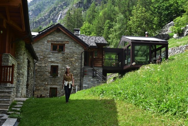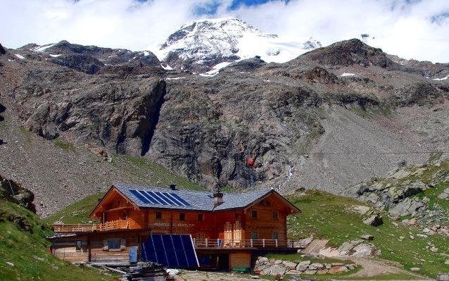 De Orestes Hütte is de in hout opgetrokken droom van twee liefhebbers van de bergen. Ze houden van de bergen, natuurlijk omdat ze in Gressoney zijn geboren en getogen, maar ook omdat het twee verdienstelijke alpinisten zijn voor wie de bergen hun leven is. Ze kennen elke hoek en rots van ‘hun’ berg, de Monterosa. En daar hebben ze de plek gevonden voor hun 'rifugio', hun berghut. Hier, op 2600 meter, bij de bron van de Indren stroom die de 'rifugio' van drinkwater en elektriciteit voorziet, waar de Pyramide Vincent zich majestueus aftekent tegen de hemel, vindt u ‘pace’, vrede en rust te midden van een verstilde en overweldigende natuur. Naar deze ‘rifugio’ is geen bagagevervoer mogelijk. U wandelt deze dag met een dagrugzakje voor 1 overnachting, uw bagage wordt vervoerd naar de volgende locatie. Alle kamers zijn voorzien van privé badkamers. De voortreffelijke diners zijn vegetarisch of veganistisch. Eigen sauna en relax ruimte met schitterend uitzicht op de bergen (€ 15 per persoon ter plekke te betalen).