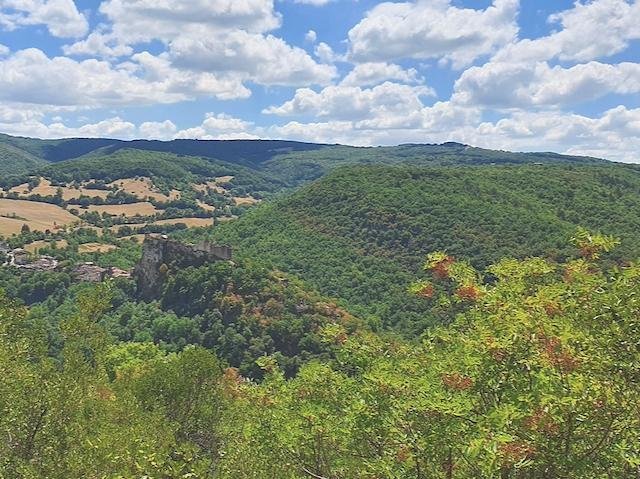 Korte transfer naar het begin van de wandeling in Amiel. Over een mooi voetpad klim je naar de uitkijktoren les Suquets vanwaar je uitzicht krijgt op de prachtige burcht Penne, een puur openluchtmuseum met schitterende steegjes en knusse pleintjes, een heerlijke ervaring. Na Penne steek je de Aveyro...