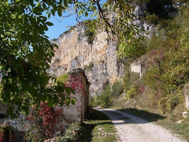 Stuk Bruniquel nr Puycelsi heeft 1 zeer pittig steile afdaling 1 km. over rode grindvlakte waar pad regelmatig niet zichtbaar ...