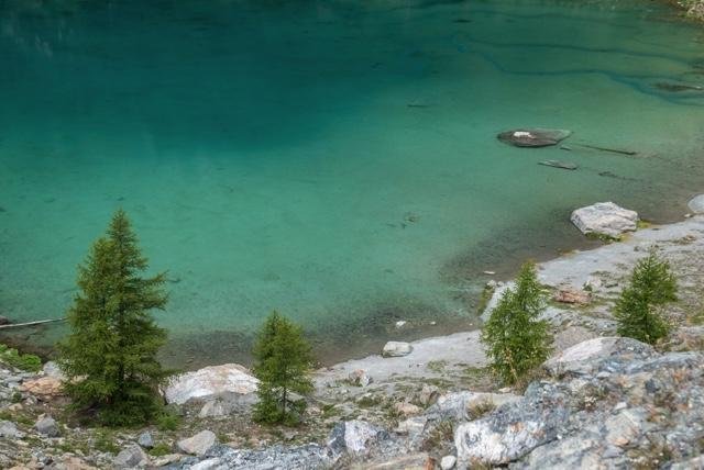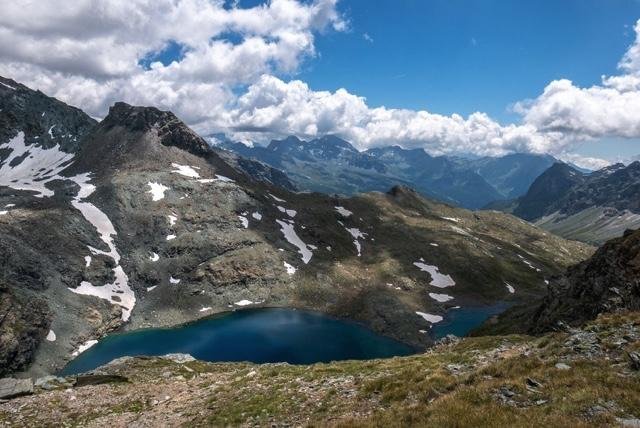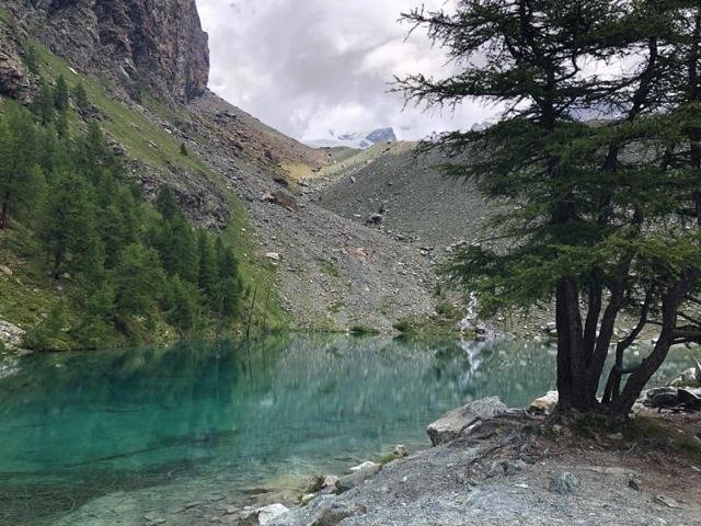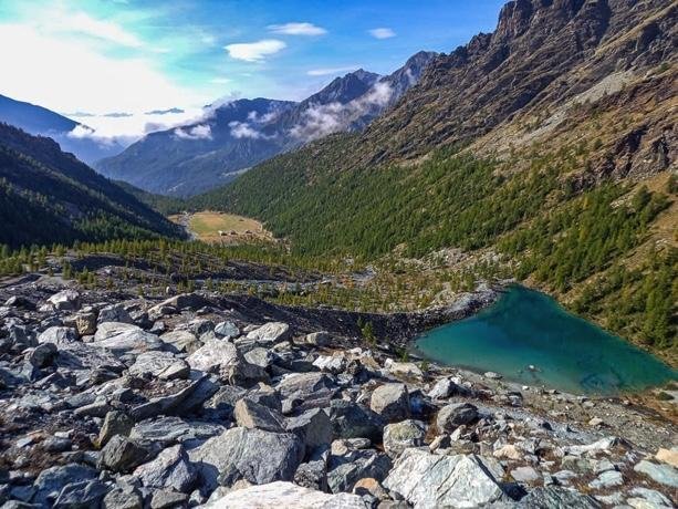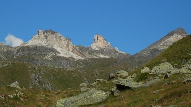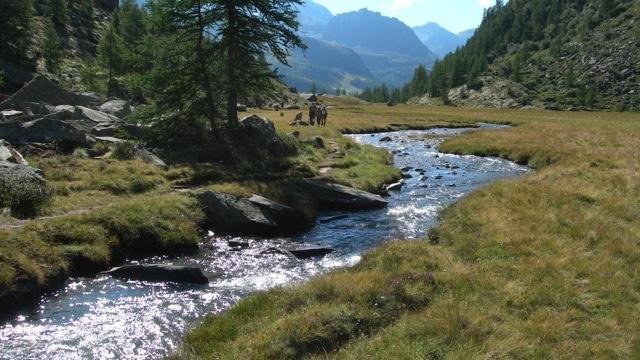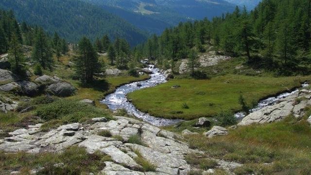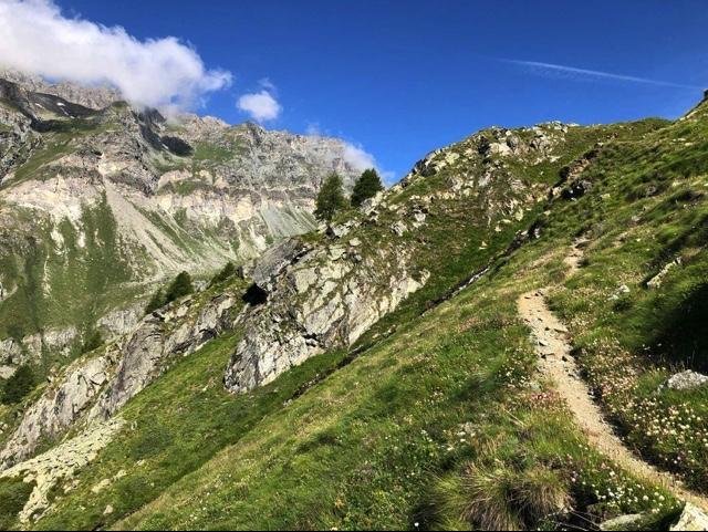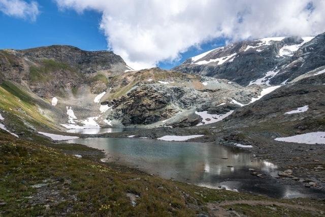 Vanuit Barmasc loop je terug naar het irrigatiekanaal Courtod dat je verder volgt tot aan de alpenweiden van Metsan waar het pad naar de Nana-pas begint. Je klimt nu door een echte alpiene omgeving naar het gletsjermeertje Lechien op 2276 m. Hier krijg je een zeldzaam fraai uitzicht op de bergmassie...