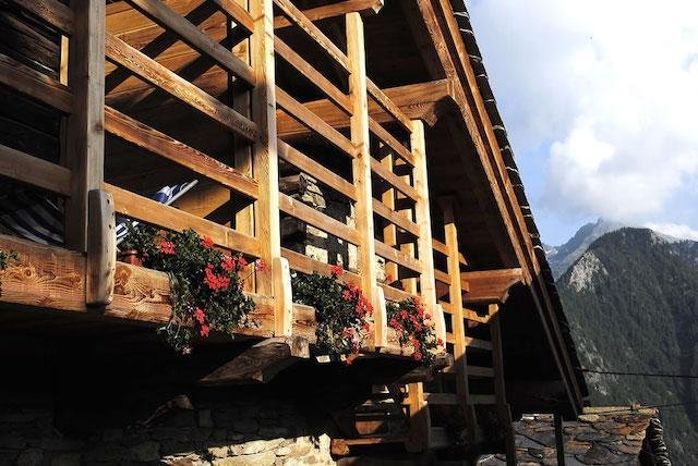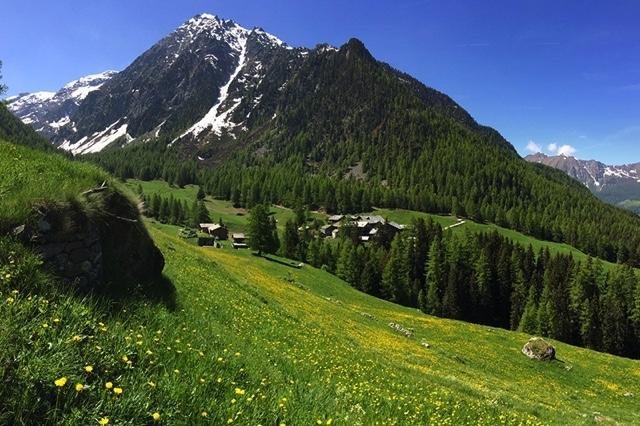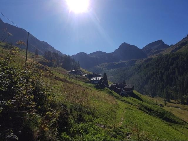 Vanuit de berghut keer je terug naar de ‘bewoonde’ wereld via fraai pad omhoog, verschillende alpenweiden met bergmeertjes en fraaie Walser dorpen. Na het uitzichtpunt Belvédère kom je uit in Cuneaz op 2032 m., weer een typische zomernederzetting waar je overnacht in een typisch Walser huis. Hier lo...