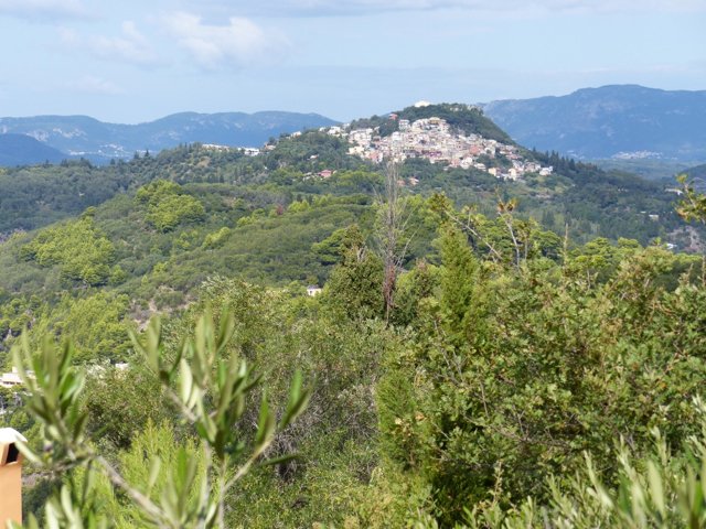 De inloopwandeling is een klim naar de hoogste top die op het zuidelijke deel van Korfoe te vinden is. De berg heet Agios Mattheos (465 m.) en ligt vlak achter het onderkomen. Deze wandeling is om te voelen hoe longen, knieën en enkels er aan toe zijn. Tussen de olijfbomen wandelt u naar het grote dorp Agios Mattheos. Vanaf de hoofdkerk begint de klim naar de gelijknamige top. Het is een geleidelijke klim over een bijzonder fraaie, oude kalderimi (geplaveid voetpad) naar het klooster Moni Pantokratoras, dat vlak onder de top is gelegen. Waarschijnlijk is het klooster gesloten. Dat is jammer, want de kloosterkerk is een bezichtiging meer dan waard. Uw loon voor de klim is echter het geweldige uitzicht over het grootste deel van het eiland. Van de top daalt u af, en loopt deels over hetzelfde asfaltweggetje terug om via een panoramische afdaling het onderkomen te bereiken.