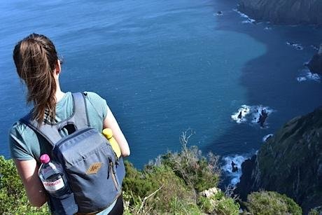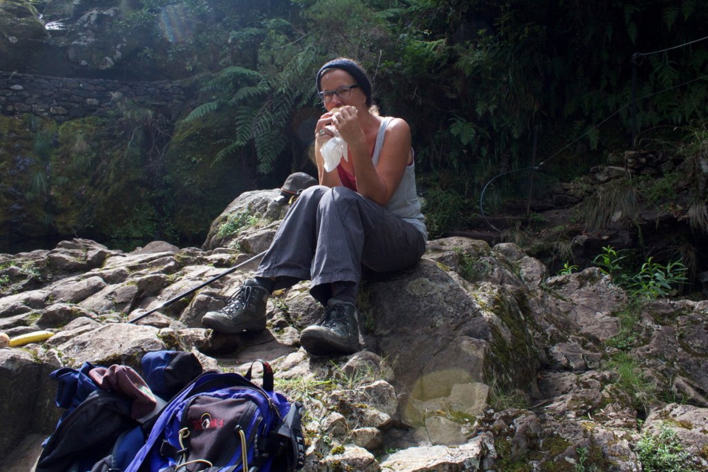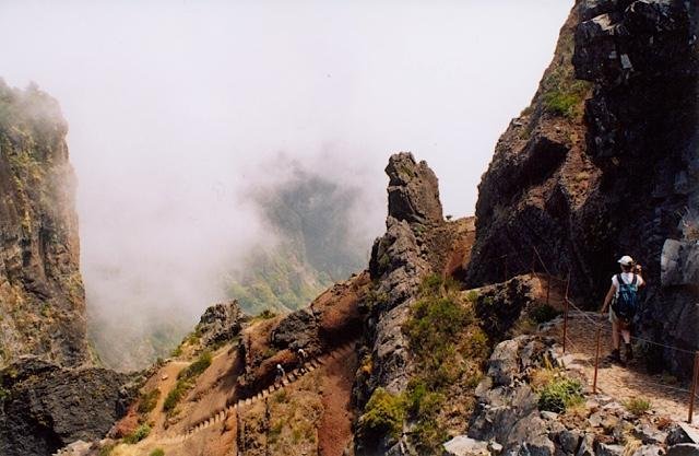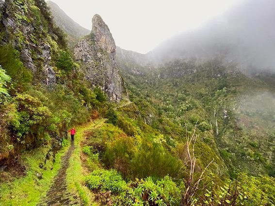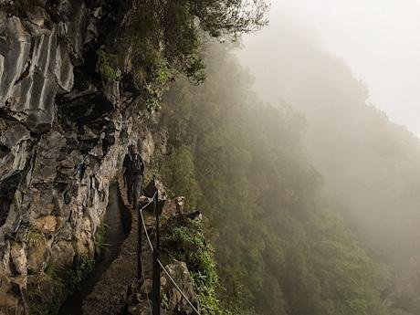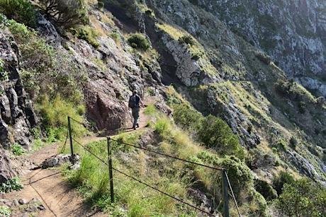 Geen makkelijke levada-paden dit keer, integendeel, de paden variëren van stevige rotspaden langs loodrechte steilwanden tot een in onbruik geraakt, schitterend veepad, en tussendoor volg je ook enkele levada’s. Er zitten veel klimmende kilometers en evenveel dalende in deze trektocht, een goede conditie en geen last van hoogtevrees zijn dan ook voorwaarden.