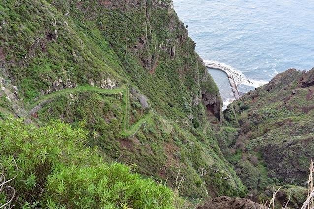 Korte transfer naar Maroços. Hier pak je de eerste levada van de trektocht op waarna je de ruige noordoostkust van Madeira gaat volgen. Na Boca do Risco volgt het pad halverwege de bijna loodrechte klifwand, gelukkig is er een balustrade aangebracht. Na Espigao Amarelo is het gedaan met de dieptes, een fraai voetpad brengt je verder naar Porta da Cruz met heerlijke terrassen en fraai natuurzwembad. Per transfer terug naar Santo da Serra. Slecht weer variant vanaf Ribeira de Machico als alternatief.