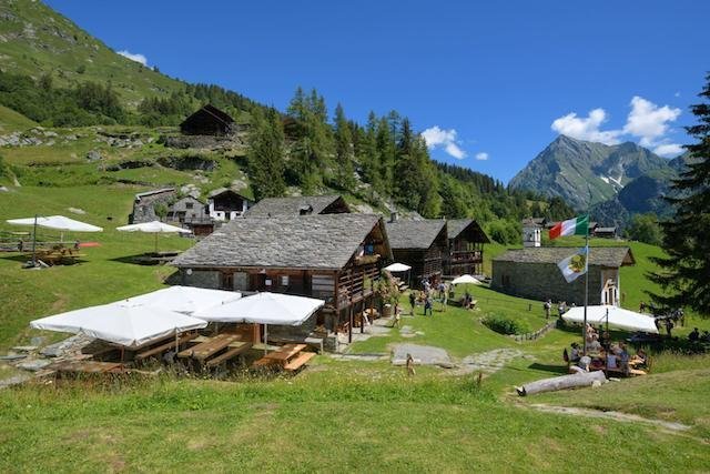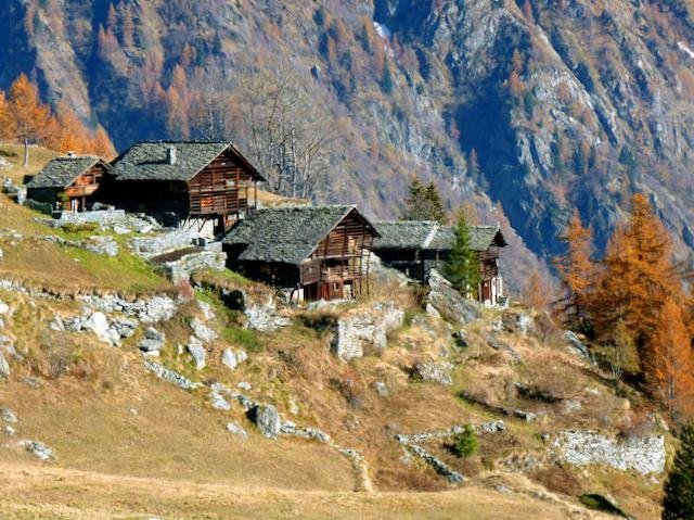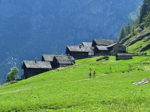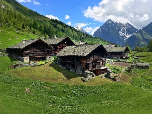 Deze dag begint met een korte transfer naar Riva Valdobbia. Vanaf dit lieflijke bergdorp kijk je voor het eerst om het hoekje, de Val Grande (della Sesia) in, de groene vallei van bloemenweiden en enkele bossen met op de achtergrond hoge bergpieken, richting de Monte Rosa. Het Walserdorp Riva Valdobbia wordt gekenmerkt door zijn traditionele, vaak fraai gerestaureerde houten Walser huizen met balkons. De monumentale kerk van San Michele Arcangelo, op het kleine plein van het dorp, is bekend van de enorme, laat 16 e eeuwse fresco van "Het Laatste Oordeel" geschilderd door Melchiorre D'Enrico uit Alagna. Maar er zijn ook elegante overblijfselen van 19e en begin 20ste eeuwse bloei te bewonderen, zoals een prachtig Art Nouveau-theater met mooie fresco's. Een korte wandeling door het dorp is daarom zeker de moeite waard. Daarna loop je door de Val Grande naar Alagna waar je omhoog loopt om het volgende zijdal, de Val d'Otro, te verkennen. In Val d'Otro bevinden zich de meest interessante nederzettingen van de Walsers in de streek. Hier kan je lunchen in rifugio Zar Senni voordat je weer afdaalt naar Alagna. In nog eens 10 minuten bereik je de buurtschap Pedemonte. Dit is een van de mooiste en meest iconische gehuchten van de Walser cultuur en het bewijs van een ingenieus vermogen om te bouwen met wat de bergen te bieden hebben.