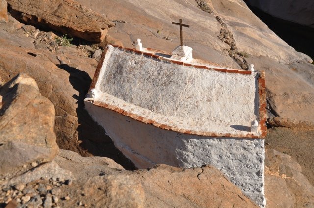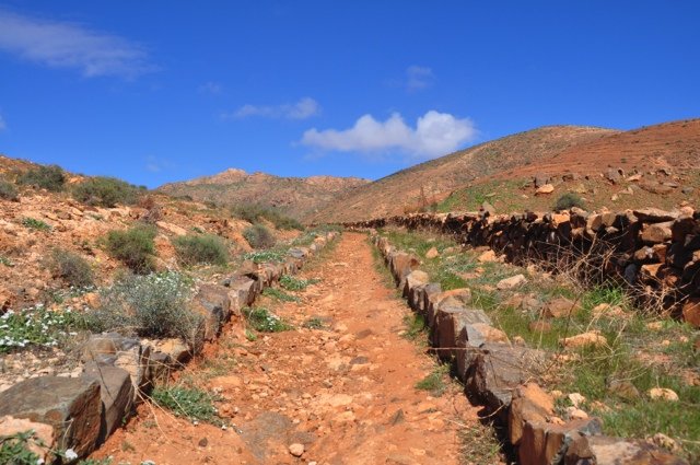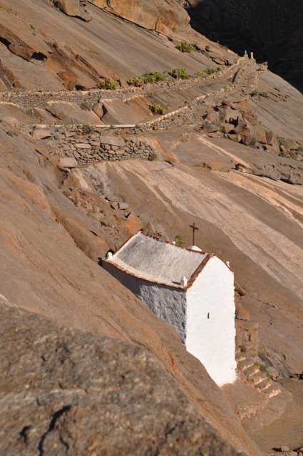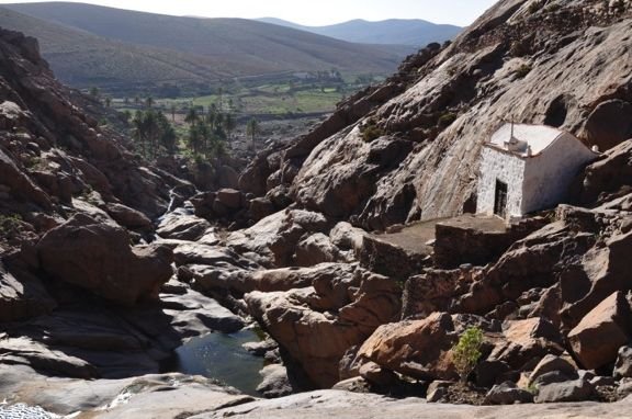 Vanuit Pájara klim je via gerestaureerde paden het kleurrijke gebergte in. Vanaf de Degollada de los Granadillos worden in de diepte het stuwmeertje en de piepkleine kapel Ermita de las Peñitas zichtbaar, prachtig gelegen in een nauwe kloof. Vogelliefhebbers kunnen aan de oevers van het stuwmeertje hun hart ophalen om vervolgens via het pelgrimspad af te dalen langs de kapel. Eindpunt is Buen Paso voor een korte transfer terug naar Pájara. Ook mogelijk als verkorte versie op en neer naar de kapel vanaf Vega de Río Palmas (4 km).