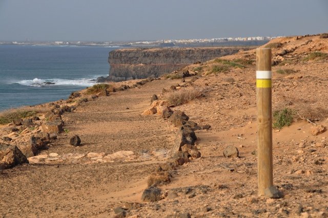 Vanaf het kleine vissersplaatsje El Cotillo wandel je richting het zuiden in het gezelschap van woest op de klifkust beukende golven. Deels over het strand waar de schoenen uiteraard uit kunnen en deels boven op de klifrand is het volop genieten van weidse uitzichten, het geluid van de oceaan en d...