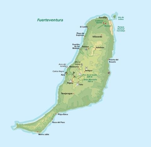 Dit wandelarrangement begint met een verblijf in Villaverde. Je maakt hiervandaan wandelingen in het noorden van het eiland. Deze tochten voeren langs strand en kust, onder andere de prachtige strandwandeling in het Parque Natural Corralejo of de tocht die begint in het vissersdorp El Cotillo en daar ook eindigt ... in een visrestaurantje met een bord verse vis en een glas witte wijn. Rondom Antigua, in het centrum van het eiland, is het landschap meer bergachtig. De wandelingen zijn dat ook, met tochten door nauwe kloven, over oude vulkaanranden, altijd met schitterende uitzichten. De bedeesde dorpjes in het centrum van het eiland met hun onvervalst Spaans karakter sieren de wandelingen op. Fuerteventura op z’n best.