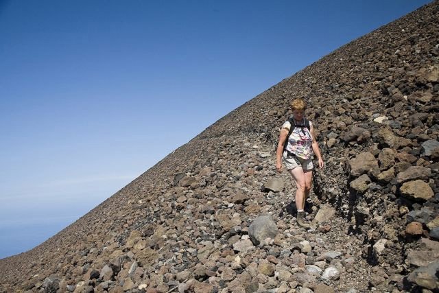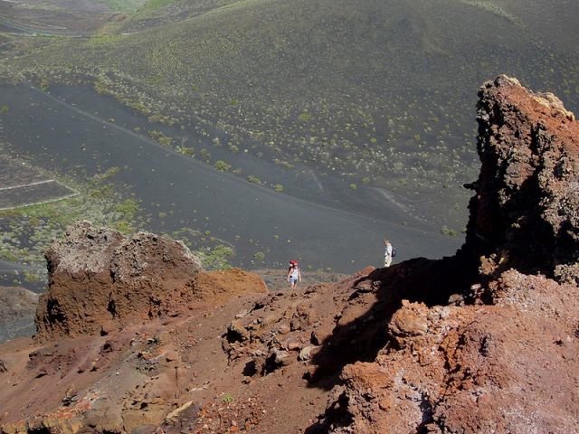 Deze vulkanentocht over de zuidelijke kam van het eiland is een absolute klassieker. Het is een van de fraaiste wandelingen op de Canarische eilanden. Er zijn maar weinig plekken ter wereld waar je in zo’n korte tijd zoveel vulkanen tegenkomt. Binnen drie uur kijk je al in vier kraters: de Hoyo, de Deseada I en II en de Martín. Langs de hele route doemen bovendien vele vulkaankegels op. Elke vulkaankrater is weer anders: de Hoyo Negro is een diepe ronde kuil, de Nambroque een wonderlijke schoorsteenpijp, de één pikzwart, de ander deels rood of felgeel van de zwavel. Deze wandeltocht biedt dan ook een ongekende afwisseling. Tel daar de vele vergezichten en het goed begaanbare pad bij op, en je hebt een wandeling die alles in zich heeft. Uit te voeren in twee varianten: 14,6 of 17,3 km.