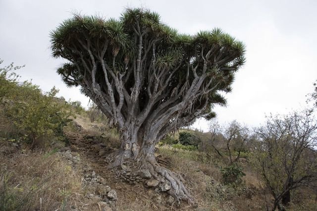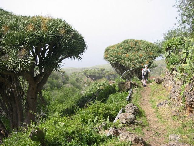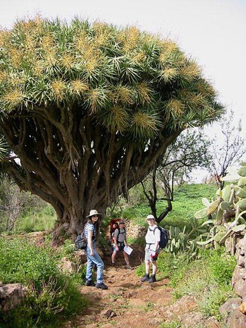 Korte wandeling in de directe omgeving van Las Tricias en kennismaking met het oude La Palma: je wandelt door een vriendelijk cultuurlandschap met veel drakenbomen - de endemische boomsoort die alleen op de Canarische eilanden en vooral op La Palma nog voorkomt - grote schijfcactussen, hier en daar ...