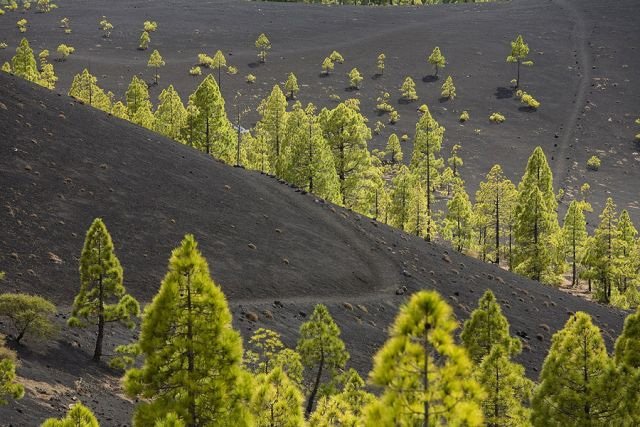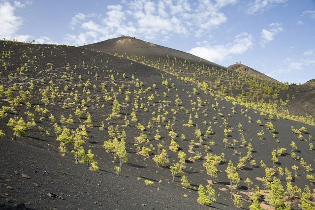 Deze wandelroute brengt je in het begin door het landelijke leven op La Palma. Zo hoor je ergens in de verte een tractor, loop je langs een casita waar Spanjaarden een verjaardag vieren en rennen de kippen van de boer voor je over het pad. Je vervolgt een steile klim naar boven, eerst langs wijngaarden en daarna door een dennenbos. Eenmaal boven bereik je de Coladas de San Juan. Hier zie je hoe lavaresten het landschap hebben veranderd. Je kunt de lavastroom nog helemaal terugzien in het dal, waar hij als een donkere rivier van gestolde lava door het groene landschap slingert. Op de terugweg wandel je over een pad met vulkanisch zand en heb je continu zicht op de Volcán Tajogaite o Cabezavaca.