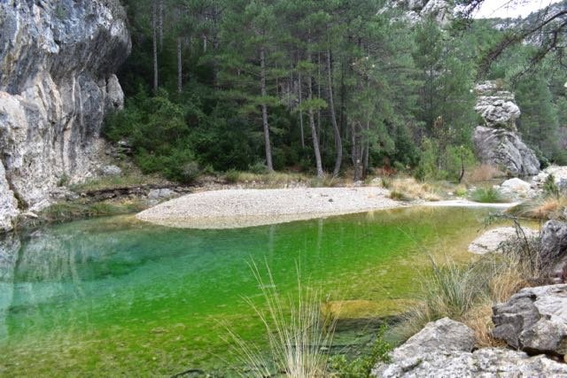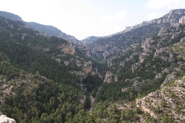 Dat is het glooiende Matarraña, het andere Matarraña is een klein maar ruige kalksteengebergte, met kale karstplateau’s en diep splijtende kloven. Ze hebben er het beschermde natuurgebied Puertos de Beceite van gemaakt. Dikke kans dat je er een kudde Spaanse steenbokken tegenkomt. In ieder geval zie je regelmatig de vale gier boven je cirkelen want die broeden er in grote aantallen.