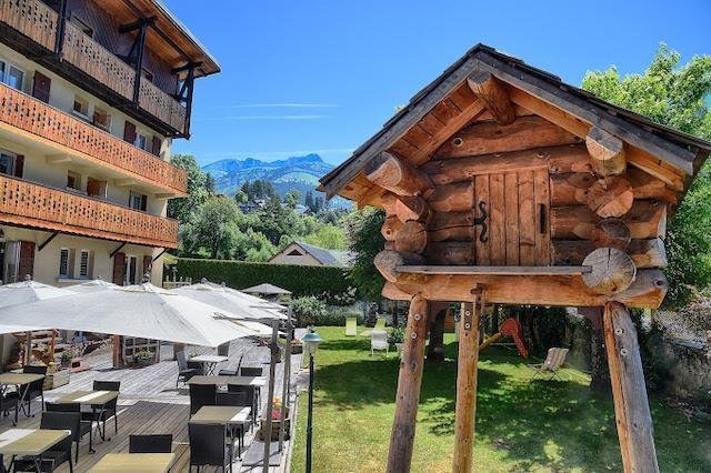 In het centrum gelegen, met prachtig zicht op de bergen, goed verzorgd hotel met tuin, terras en zwembad. Er is ook een wellness en een restaurant. De kamers zijn ruim en beschikken over eigen sanitair en zijn ingericht in chalet-stijl. Het restaurant verzorgt maaltijden met veelal locale producten.