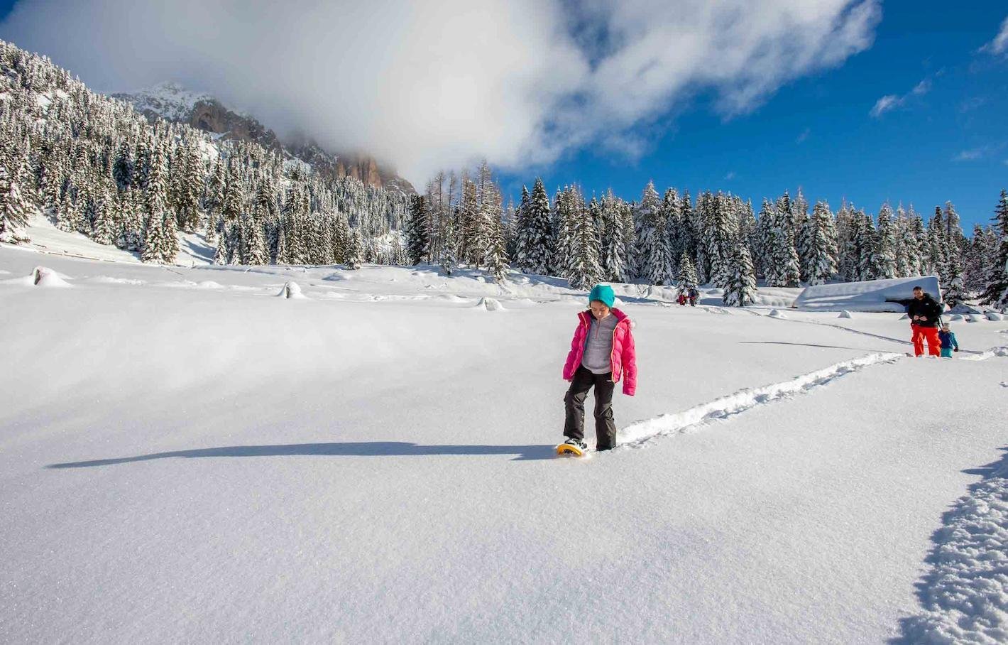 Start je winterse vakantie in Val di Fassa met een begeleide sneeuwschoenwandeling in een klein groepje. De duur en zwaarte van de wandeling is afhankelijk van de weersomstandigheden. Het leuke aan deze wandeldag is dat je samen met een lokale gids op pad gaat, die je alles kan vertellen over de natuur en de lokale cultuur. Het is de perfecte manier om bekend te raken met het sneeuwschoenwandelen, terwijl je tegelijkertijd trekt door uitgestrekte bossen vol besneeuwde sparren en dennen met regelmatig een fraai uitzicht op het winterse landschap.