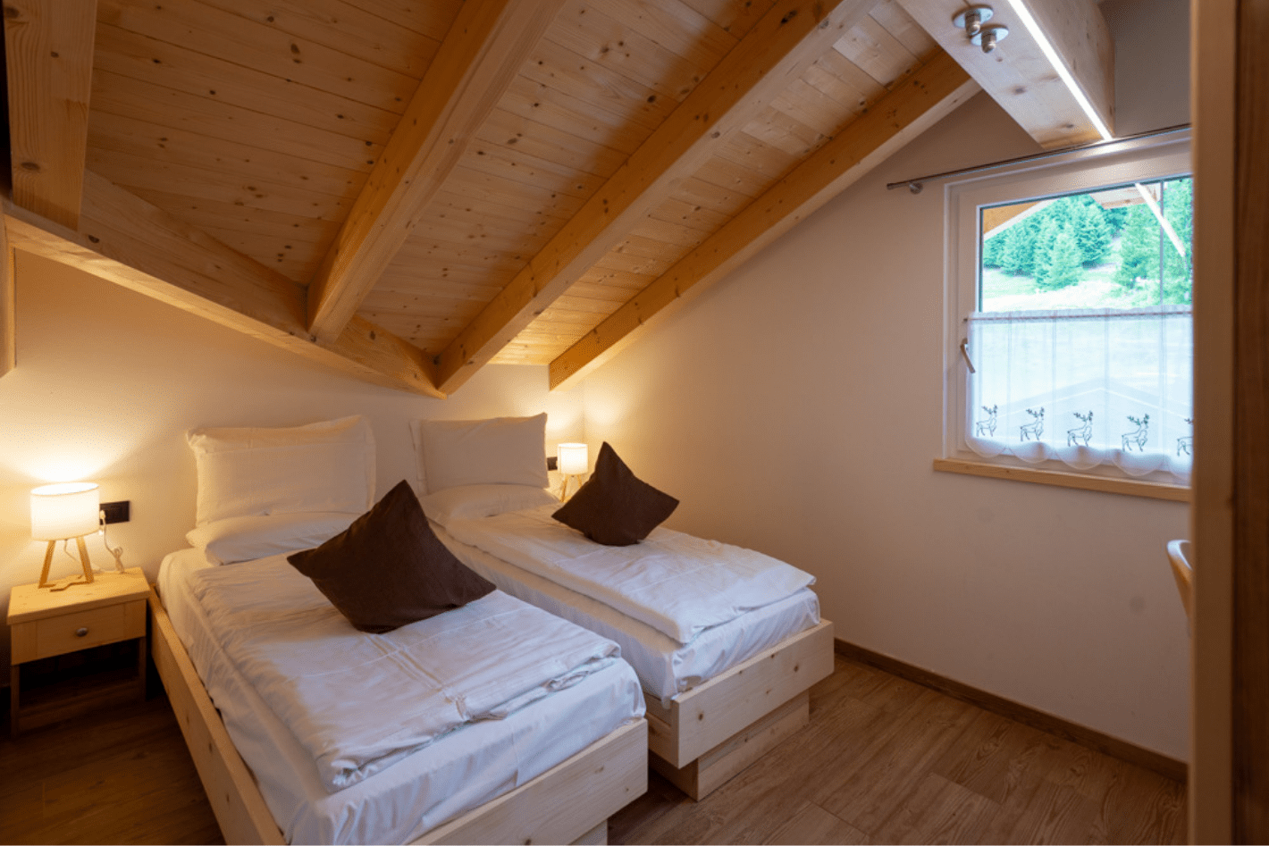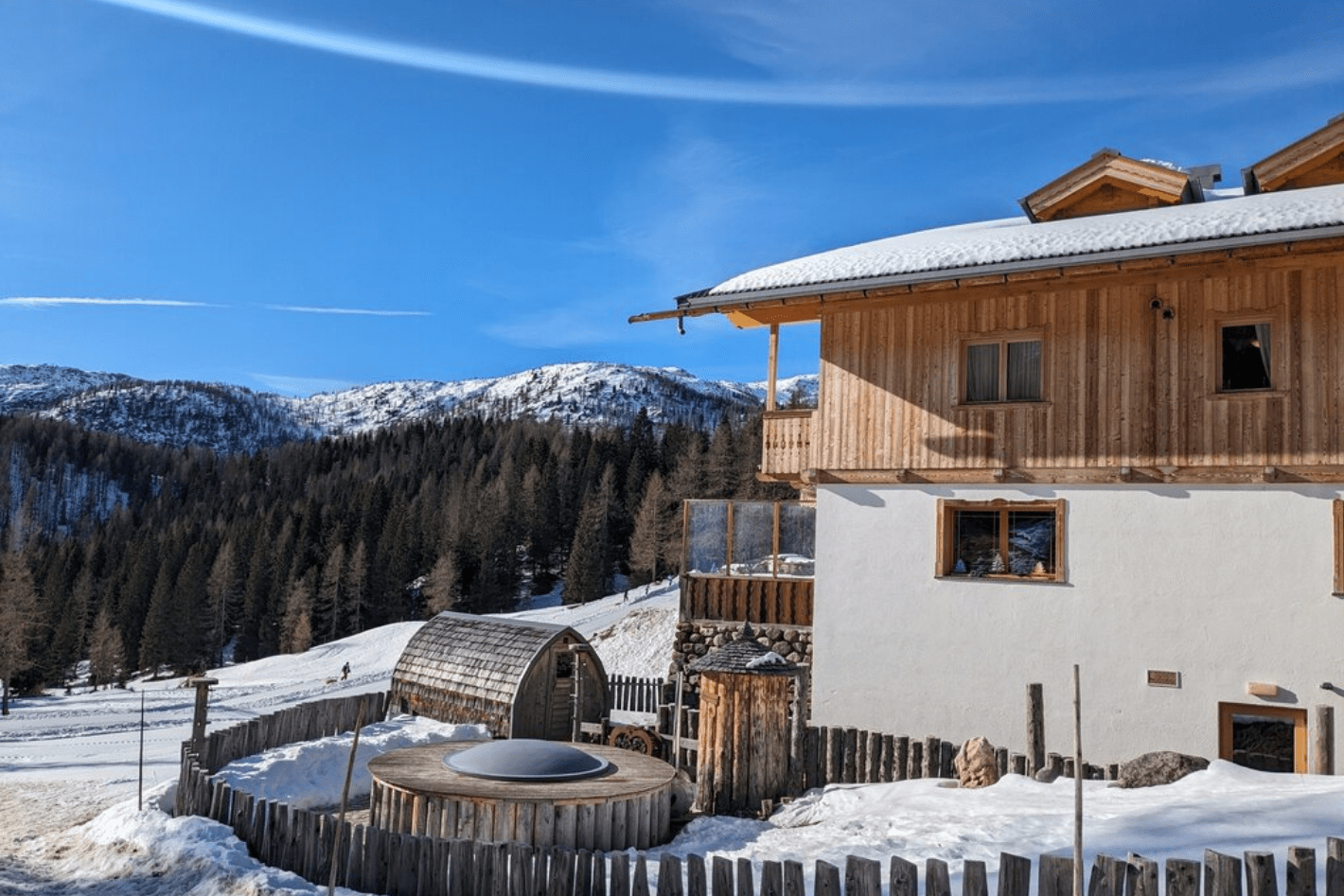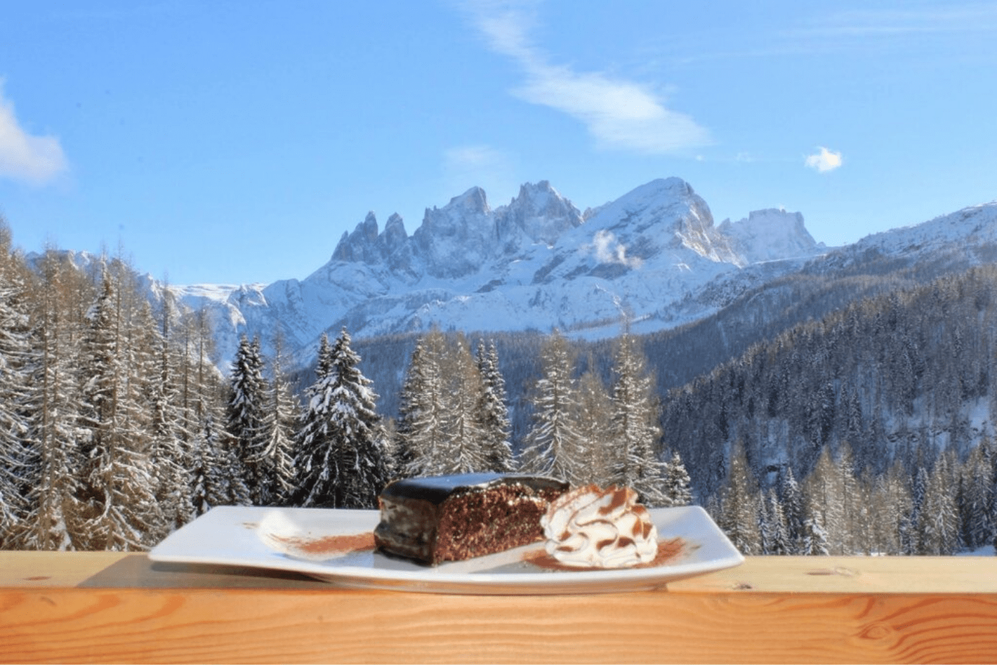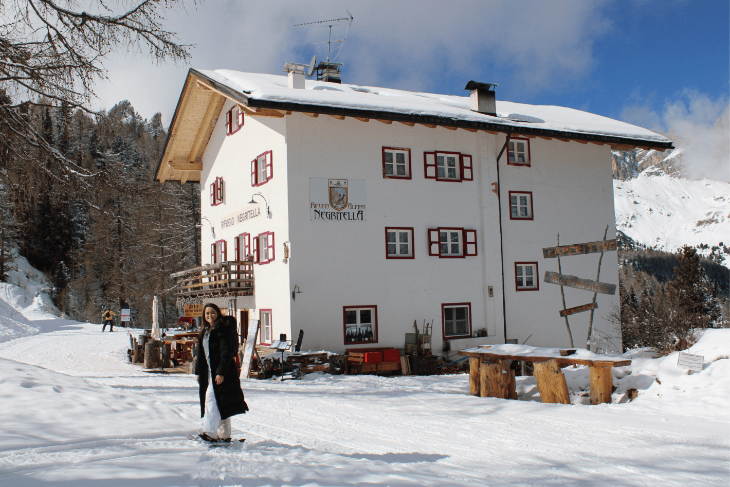 De rifugio nabij Passo Pellegrino ligt op 1800 meter hoogte en biedt een warme en gastvrije sfeer, met een scala aan voorzieningen voor een comfortabel verblijf tijdens je sneeuwschoen wandelreis in Val di Fassa. De rifugio beschikt over gezellige kamers in de typische Dolomieten stijl, compleet met alle nodige voorzieningen, zoals privé badkamers en gratis WiFi. Elke ochtend kun je genieten van een uitgebreid ontbijtbuffet met een ruime keuze aan zoete en hartige lekkernijen, waaronder huisgemaakte taarten, jams en koekjes, kazen, yoghurt, granen, melk, koffie, thee, kruidenthee en vers geperste sappen. Na een dag wandelen in de sneeuw kun je in het restaurant van de accommodatie genieten van traditionele specialiteiten. 's Avonds staat er namelijk een uitgebreid driegangendiner voor je klaar plus een rijk saladebuffet. Deze rifugio is vooral een perfecte accommodatie voor een sneeuwschoen wandelreis vanwege de Green Wellness Spa. Vanuit de bio sauna, jacuzzi en het 'Sensorial Kneipp pad' gelegen buiten de rifugio, heb je een fraai uitzicht op de Pale di San Martino.