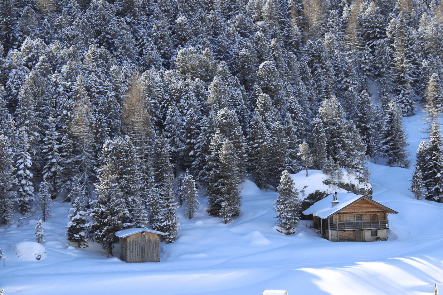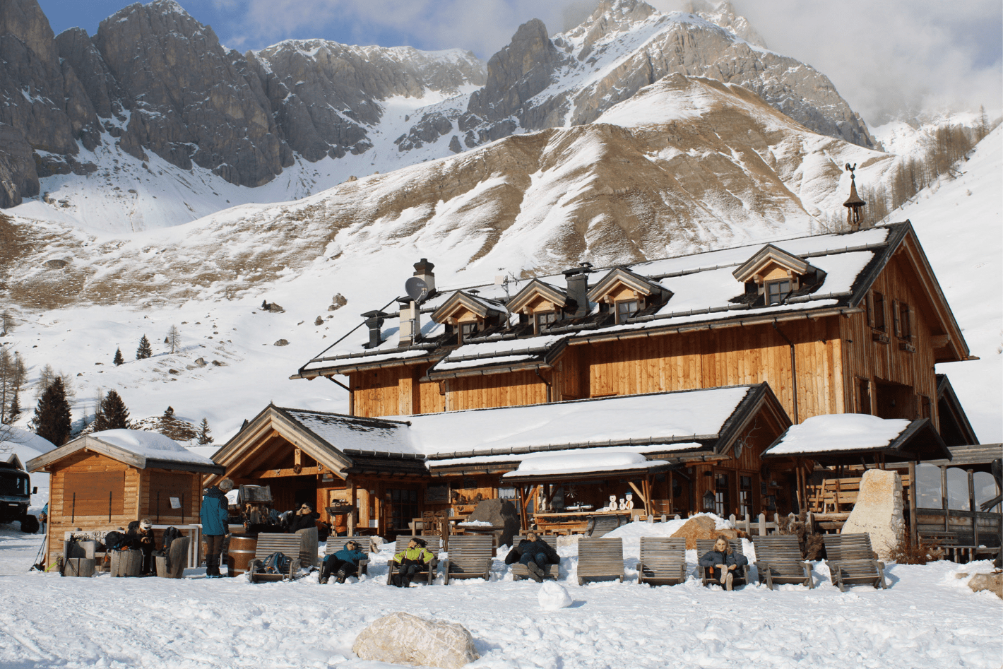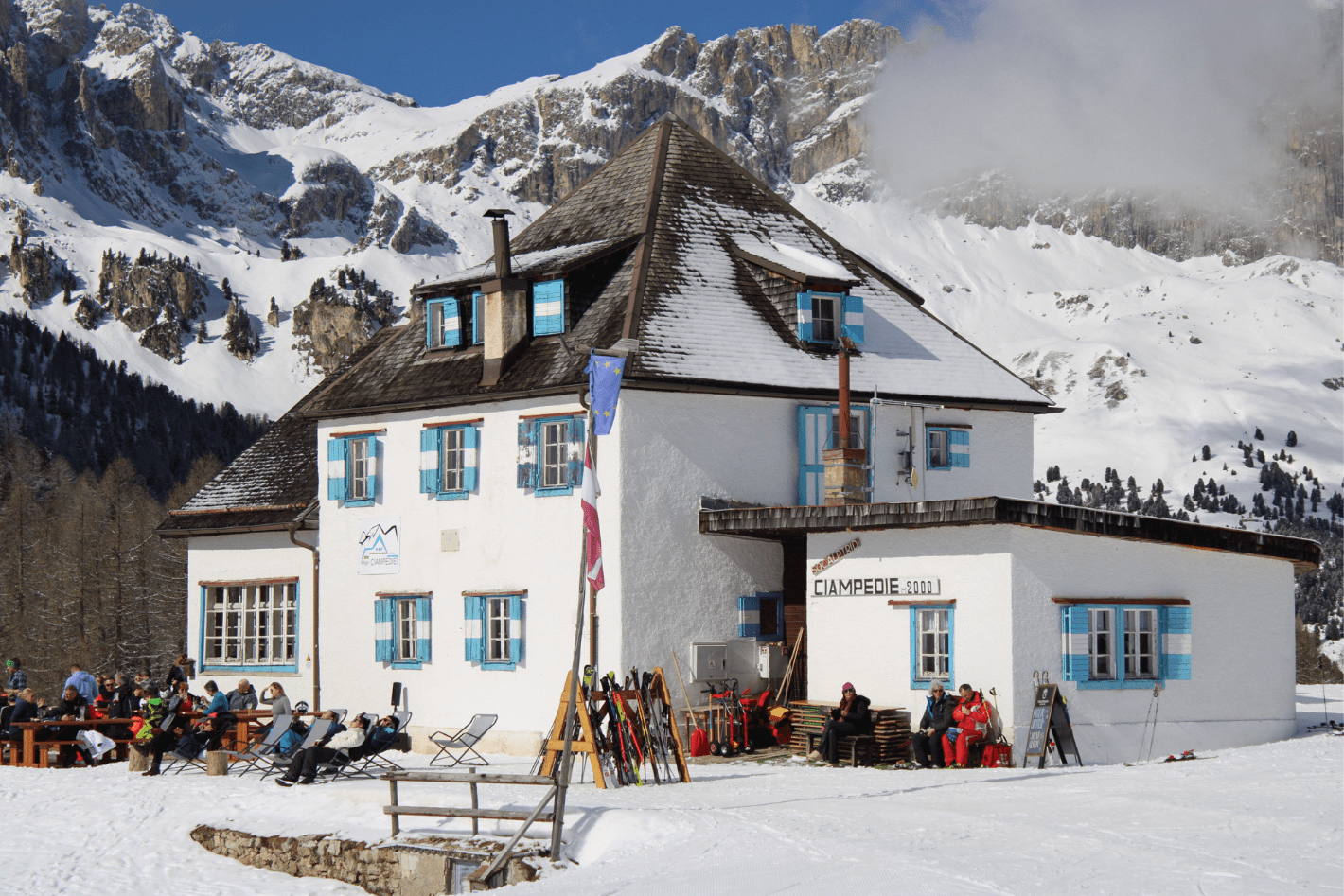 Na het ontbijt in de rifugio is het tijd om af te dalen door de Val Duron naar de bewoonde wereld. Via Baita Fraines loop je naar het kleine dorp Pian, een van de oudste nederzettingen in Val di Fassa vol fraaie houten Ladino-huizen in tradionele stijl. Je loopt vervolgens verder tot je beneden Campitello weer bereikt. In Campitello is er een gevarieerde keuze aan lokale restaurants voor de lunch. Na de lunch kan je een korte winterse (rond)wandeling maken van Campitello naar Canazei en terug. Vervolgens word je per transfer naar je eerste hotel gebracht om de bagage op te halen. Hierna brengt een transfer je naar de volgende berghut op 1800 meter hoogte in de omgeving van Passo San Pellegrino.