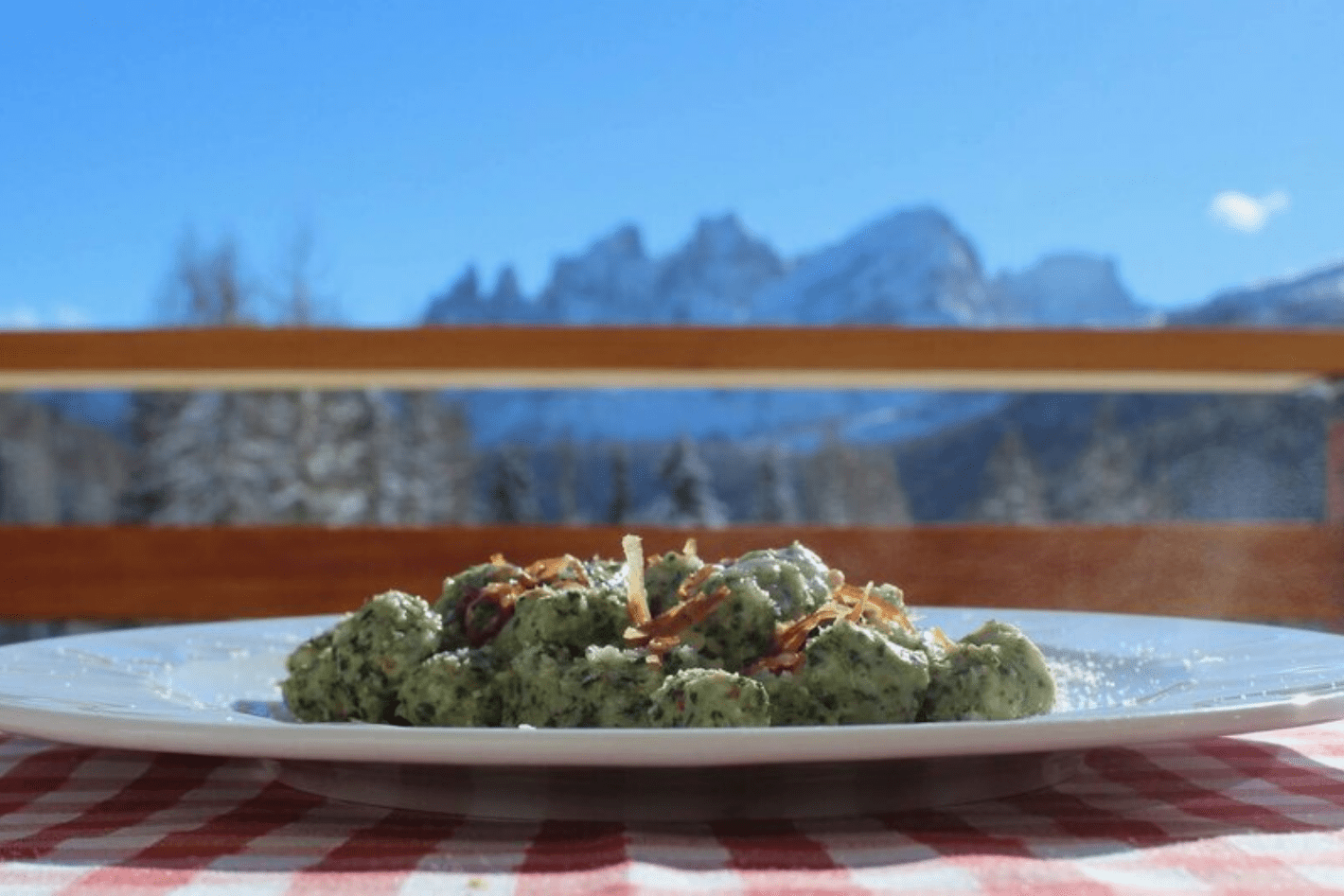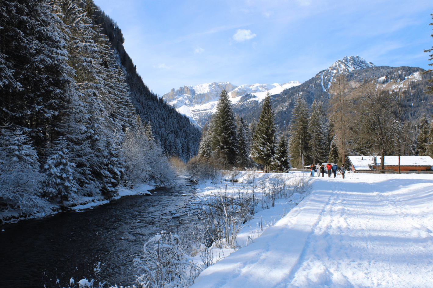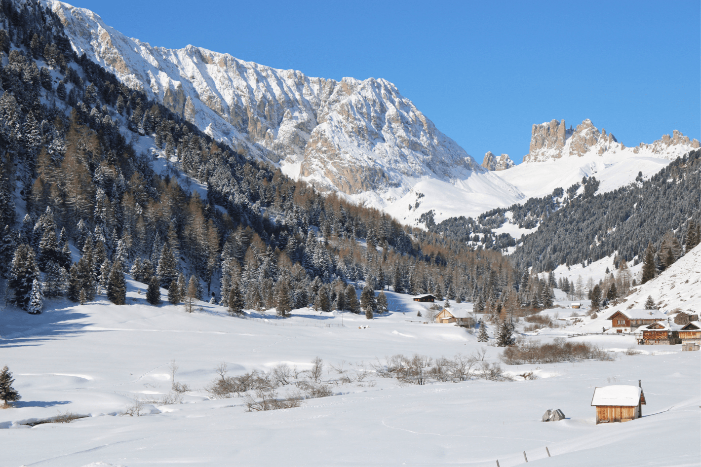 Deze dag start met de kabelbaanrit Vigo-Catinacco naar het zonnige plateau van Ciampedie op 1980 meter. Van hieruit loop je over een besneeuwd bospad richting het Gardeccia gebied. Je wordt getrakteerd op fraaie uitzichten op rotsformaties en de witte Dolomieten pieken in de Val di Fassa. Halverwege je reis bereik je de zogehete 'Gardeccia kom', die naar verluidt de naam heeft geïnspireerd voor het legendarische Catinaccio gebergte. 'Ciadenac' betekent 'grote kom' in het Ladino. Het herinnert je aan de vorm van de houten kom die ooit werd gebruikt om melk, voer en huishoudelijke gerechten te verzamelen. Onderweg maak je een stop in een rifugio op 1960 meter hoogte waar je een heerlijk traditionele lunch kunt nuttigen. Hierna vervolg je een fraai pad richting het rustige dorpje Muncion. Je eindigt deze wandelreis in Pera, waar je de bus naar je accommodatie neemt.