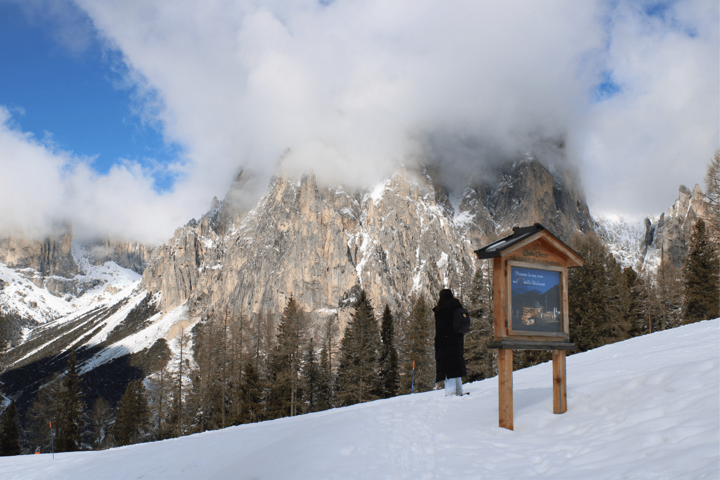 Deze dag start met de kabelbaanrit Vigo-Catinacco naar het zonnige plateau van Ciampedie op 1980 meter. Van hieruit loop je over een besneeuwd bospad richting het Gardeccia gebied. Je wordt getrakteerd op fraaie uitzichten op rotsformaties en de witte Dolomieten pieken in de Val di Fassa. Halverweg...
