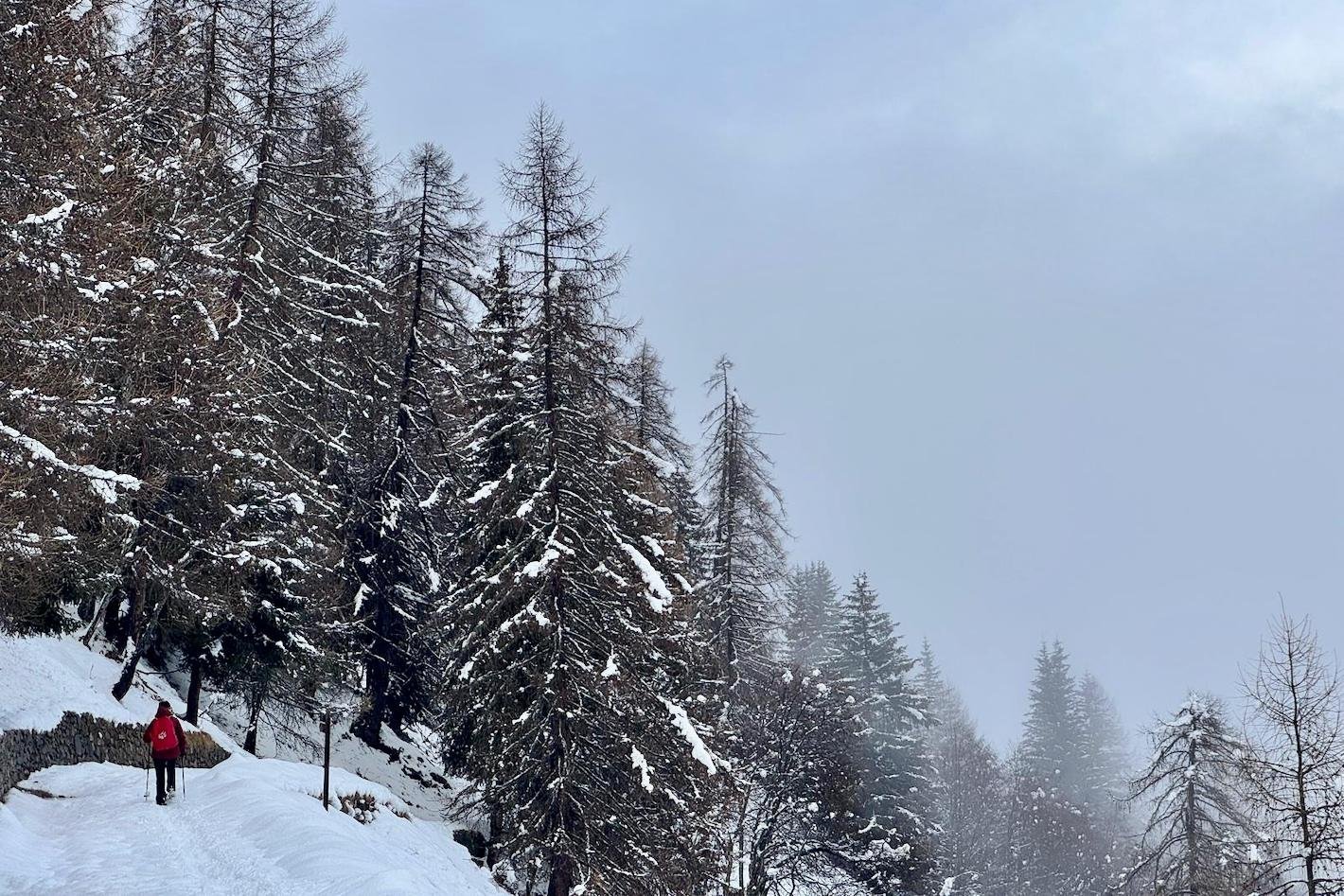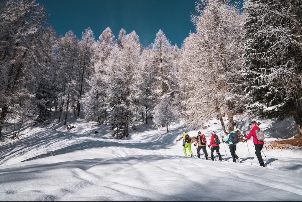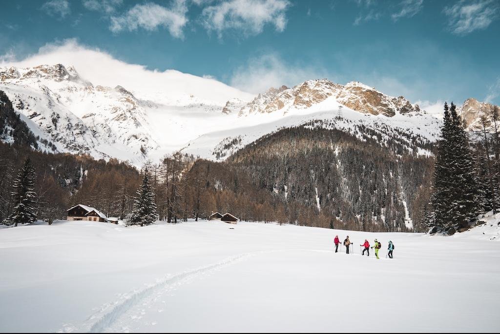 Je start deze wandeldag op hetzelfde punt als de Il Bosco degli Urogalli wandeling. Per auto (5 min) en bus word je naar 1585 meter hoogte gebracht. Deze wandeling in het Stelvio Nationaal Park leidt je door een waar winterparadijs. Het pad passeert oude boerderijen en traditionele 'baita's, die als stille getuigen van een rijk landbouwverleden dienen. Terwijl je door de knisperende sneeuw stapt, word je omgeven door uitgestrekte velden en dichte naaldbossen. Het hoogtepunt van de route is het fraaie uitzicht op de omliggende toppen van de Val di Sole, die majestueus boven het dal uittorenen. Dit alles maakt de wandeling niet alleen een fysieke uitdaging, maar ook een visueel spektakel, waarbij elk uitzicht een ansichtkaart zou kunnen zijn. Onderweg is er gelegenheid om iets te eten of te drinken in een rifugio. Je gaat met de auto (of per bus) weer terug naar de accommodatie.