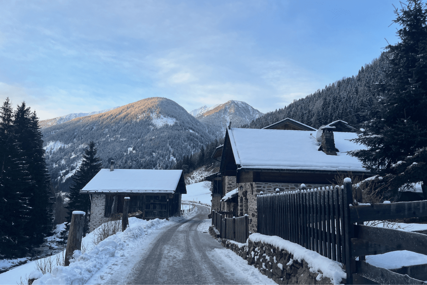 Val di Peio, gelegen in de Italiaanse regio Trentino, is een fraaie vallei aan de zuidkant van het Nationale Park Stelvio en daarmee een ideale winterbestemming voor liefhebbers van sneeuwschoenwandelen. Het doodlopende dal is omringd door de indrukwekkende pieken zoals de Monte Cevedale, en biedt daardoor een fraai decor voor winterse excursies. De winterwandelroutes variëren van eenvoudige wandelingen langs bevroren riviertjes en gletsjer meertjes, tot meer uitdagende tochten die stijgen naar stille, ongerepte natuurgebieden met uitgestrekte sneeuwvelden. Historisch gezien heeft Val di Peio een rijke cultuur, met oude boerderijen en traditionele 'baita's' die verhalen vertellen van een landelijk verleden. Deze sfeervolle houten gebouwen, vaak omgebouwd tot authentieke gastverblijven, bieden een kijkje in de levenswijze van de berggemeenschappen door de eeuwen heen. Sneeuwschoenwandelen in Val di Peio is dus niet alleen een fysieke activiteit, maar ook een culturele ontdekkingstocht, die wandelaars dichter bij de geschiedenis en tradities van dit fraaie alpiene landschap brengt. Zeven dagen lang logeer je in zo'n sfeervolle historische chalet en ben je te gast bij Martina en Stefanie die samen met chef-kok Tiziano zorgen voor een warm en welkom verblijf.