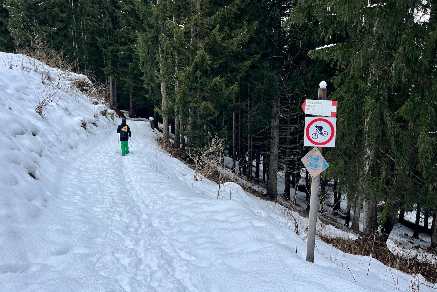 Dit is een langere tocht, omdat het een combinatie is van twee winterwandelingen: Sentiero Valpiana en Sentiero Degli Gnomi. Je start de wandeling wanneer je de skibus in het dorp Fucine (983 meter hoog) verlaat. Vanaf hier loop je richting Ossana, beroemd van het imposante kasteel di San Michele. H...